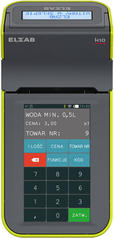 Mobilna kasa fiskalna ONLINE z dotykową, kontekstową klawiaturą zapewniającą intuicyjną obsługę. ELZAB K10 ONLINE BT/ WiFi to kolejna kasa z najpopularniejszej na rynku linii mobilnych kas dotykowych ELZAB K10. Dedykowana zarówno do pracy stacjonarnej jak i w terenie, w usługach oraz małych placówkach handlowych.