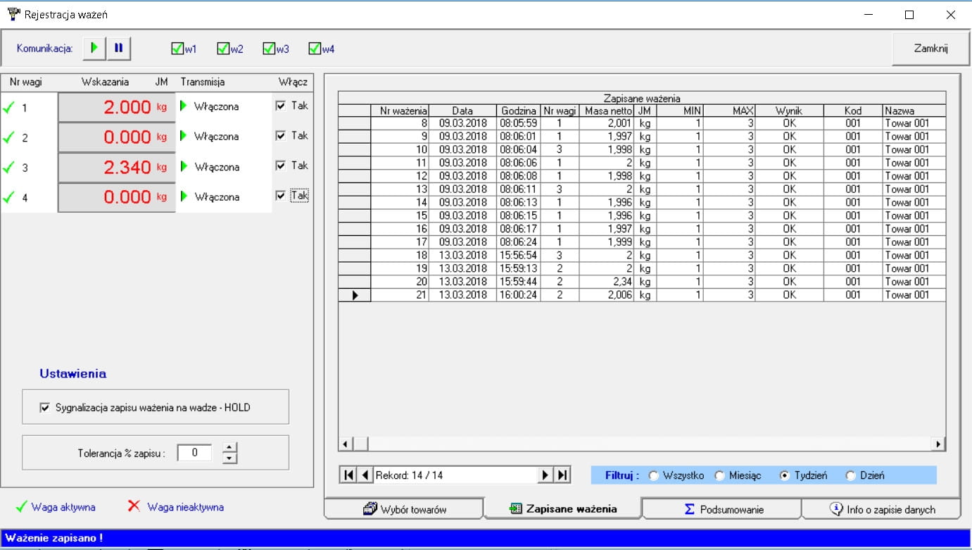 - rejestrowanie pomiarów z kilku wag jednocześnie;