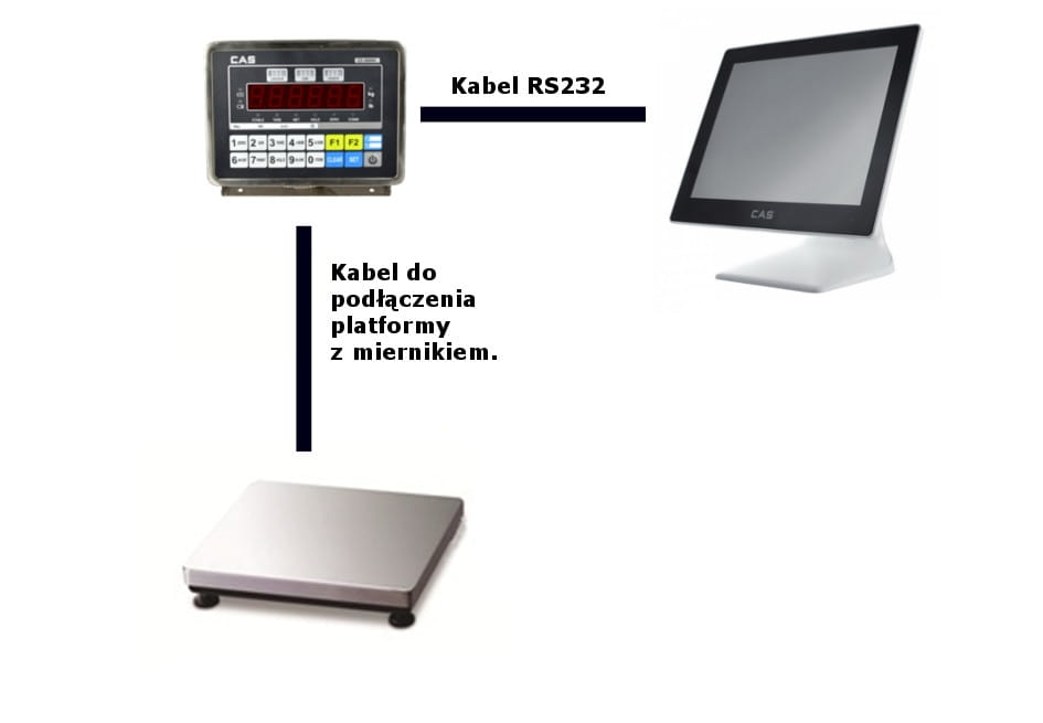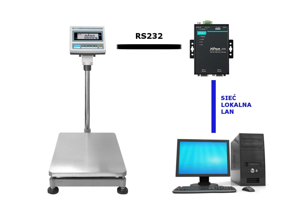- zbieranie pomiarów ze wszystkich wag CAS, wyposażonych w złącze RS232 lub USB ( wyłączając serię wag drukujących etykiety - CAS CL). Wagi mogą być podpięte bezpośrednio do komputera / urządzenia POS lub wykorzystując serwery portów szeregowych MOXA.