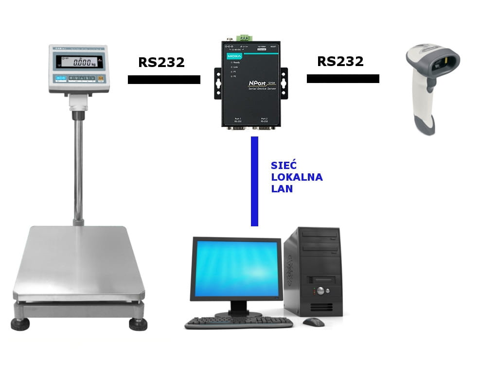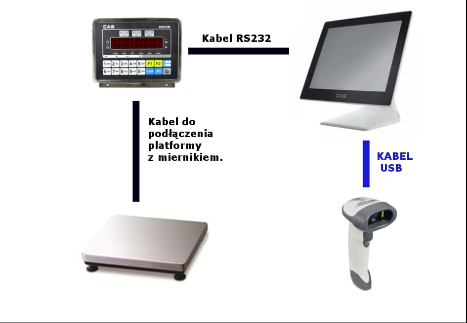 - zbieranie pomiarów ze wszystkich wag CAS, wyposażonych w złącze RS232 lub USB ( wyłączając serię wag drukujących etykiety - CAS CL). Wagi mogą być podpięte bezpośrednio do komputera / urządzenia POS lub wykorzystując serwery portów szeregowych MOXA.