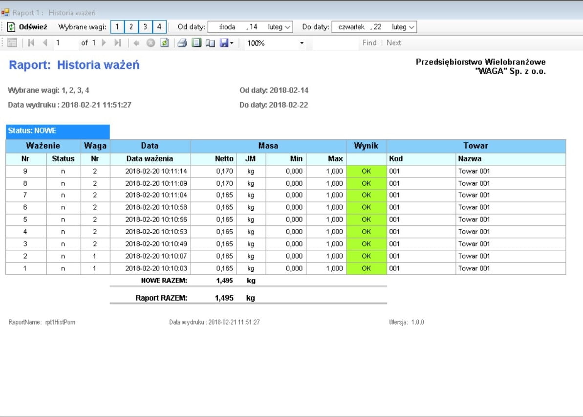 W przypadku zainteresowania programem obsługującym większą ilość wag, prosimy o kontakt z Opiekunem Państwa firmy.